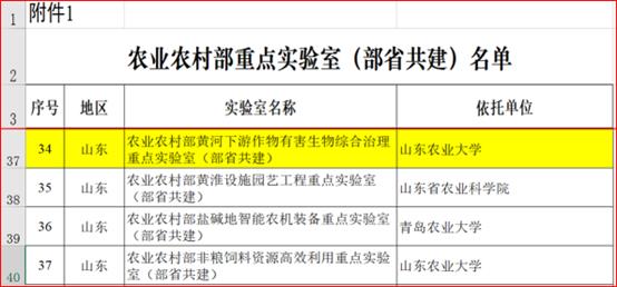 近日,农业农村部办公厅公布了农业农村部重点实验室(部省共建)名单,山东农业·大学牵头申报的“农业农村部黄河下游作物有害生物综合治理重点实验室“顺利通过遴选,获批为部省共建重点实验室。