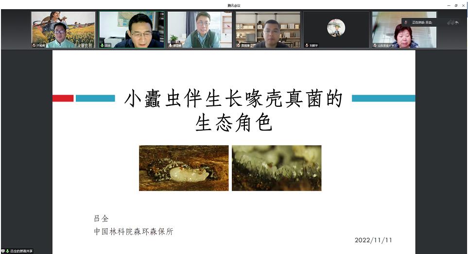 2022年11月11日,应学院邀请,中国林业科学研究院吕全研究员为我院师生做了“小蠹虫伴生长喙壳真菌的生态角色”的学术交流报告。本次学术报告会以线上方式开展,学院师生130余人参会,会议由原雪峰教授主持。
