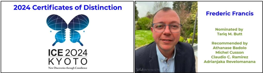 近日,国际昆虫学理事会(Council for the International Congress of Entomology)向植保学院讲座教授、比利时列日大学Frederic Francis博士颁发2024年“国际昆虫学杰出成就奖”。“国际昆虫学杰出成就奖”旨在奖励在昆虫学基础与应用领域的杰出贡献者,由国际昆虫学理事会于每4年召开的国际昆虫学会上颁发,本次共授予6位知名学者。2024年国际昆虫学大会将于8月25-30日在日本京都召开。