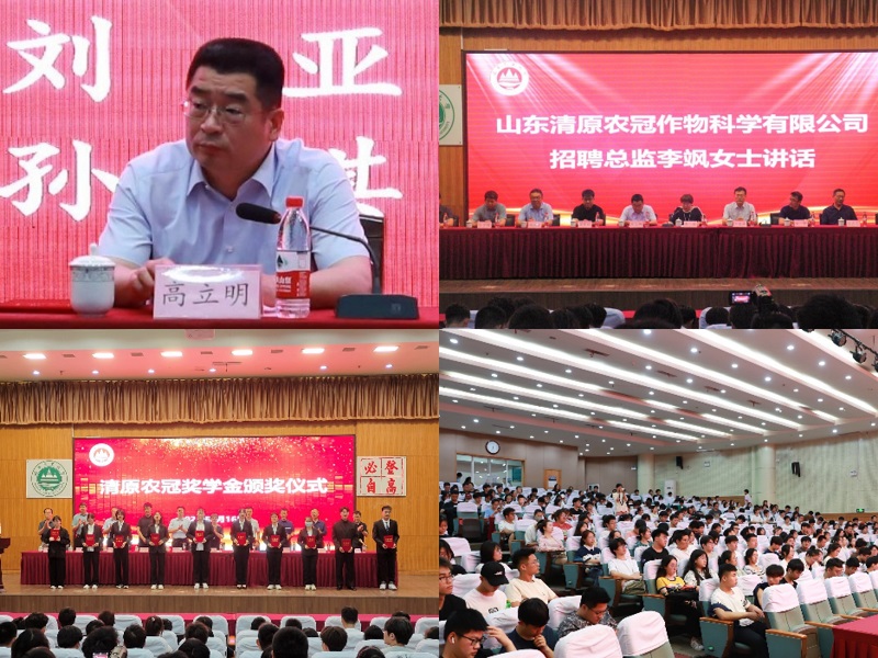 5月16日,“清原农冠”奖学金颁发仪式在泮河校区学术报告厅举行,学校党委常委、副校长高立明,青岛清原作物科学有限公司招聘总监李飒参加活动并为获奖学生颁奖。