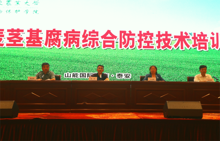 在全国上下深入学习贯彻党的二十大精神、学习贯彻习近平新时代中国特色社会主义思想主题教育之际,山东农业大学365BET官网网站以服务“三农”为己任、推进主题教育走深走实,用实际行动深入贯彻习近平总书记“三农”思想,。5月24日,植保学院联合泰安市农业农村局、岳洋农业合作社举办小麦茎基腐病防控技术现场观摩及培训会。山东省农技推广中心、山东省农科院、山东农业大学、泰安市各县市区农技推广中心、植保站及各县市种粮大户120余人参加会议。