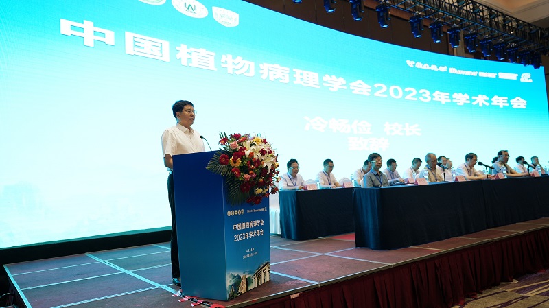 冷畅俭对大会的召开表示祝贺,并简要介绍学校办学发展情况和取得的成绩。他表示,深入开展植物病理学研究,科学有效防控农作物病虫害,是保障粮食和重要农产品稳定安全供给的重要措施。植物保护学科作为我校传统优势学科,近年来在植物保护领域取得了多项突破,在全球首次找到并克隆抗小麦赤霉病关键基因Fhb7,成果作为封面文章在Science发表,并入选“十年来我国农业科技的30个标志性成就”;“主要蔬菜卵菌病害关键防控技术研究与应用”荣获2018年度国家科技进步二等奖;“农科专业人才培养‘两方向、四层次、四融合’实践教学模式研究与实践”获省教学成果特等奖;“以螨治虫:果蔬地下害虫生物防治引领者”获“互联网+”国赛金奖。冷畅俭指出,当前学校正值“冲刺‘十四五’,攻坚‘双一流’”的关键时期,立足农业主产区,服务产业主阵地,加快推进小麦产业研究院和现代设施农业产业研究院建设,真菌病、病毒病绿色防控技术等均已列入产业研究院的主攻方向,希望以本次年会为契机,进一步加强与参会单位的交流与合作,持续破解产业发展“卡脖子”难题,努力为我国农业高质量发展做出更大的贡献!