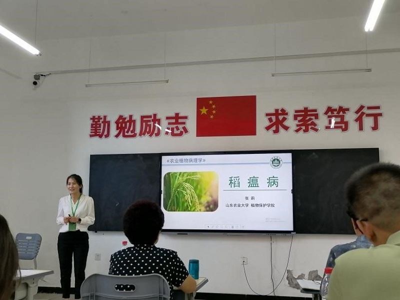 张莉参加了教学基本功交流。在来自全国21所高校、30名年轻教师参加的讲课比赛中,张莉老师表现突出。其参赛的“水稻稻瘟病”以绝对优势获得此次教学比赛一等奖。中国植物病理学会理事、甘肃农业大学365BET官网网站徐秉良教授为张莉颁发获奖证书并给予高度评价和鼓励。