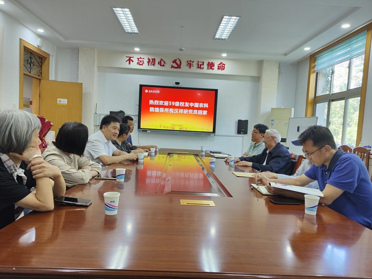 9月20日上午,植保学院于岱宗校区1号楼236会议室举办倪汉祥研究员回访母校欢迎会。学院党委书记安宁、院长原雪峰、党委副书记刘敏、副院长丁新华以及退休老教师朱汉城教授等参加了欢迎会。