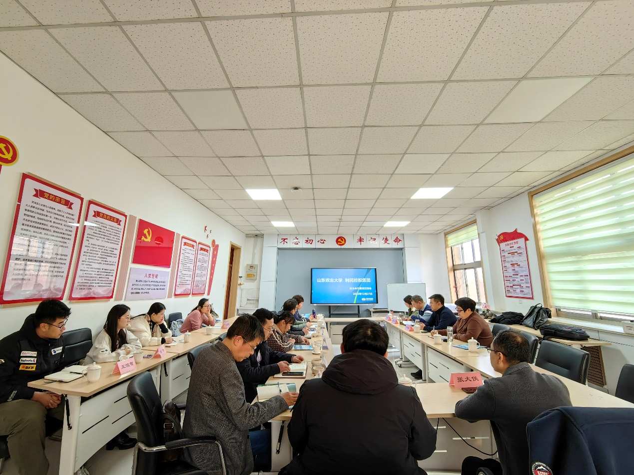 首先,安宁书记介绍了学院发展历史和主要情况,尤其是近年来学院在人才培养和创新创业方面取得的成绩。利民控股集团股份有限公司营销中心植保部副总经理罗连杰就公司发展历程、岗位需求和薪资福利等进行了介绍。双方希望通过此次交流,以学生培养、实习就业、师资培训、技术攻关等为切入点,希望能在人才培养、产教融合、校企合作等方面开展深度合作,促进我院校企合作和创新人才培养。随后,与会人员参观了山东省蔬菜病虫生物学重点实验室和农药制剂加工实验室。