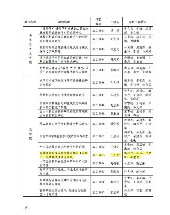 项目名称 农学类本科生实践技能训练田(认知田)教学模式改革与实践