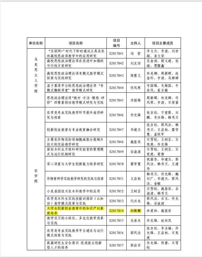 年度编号(X2017054),主持人(封德顺)