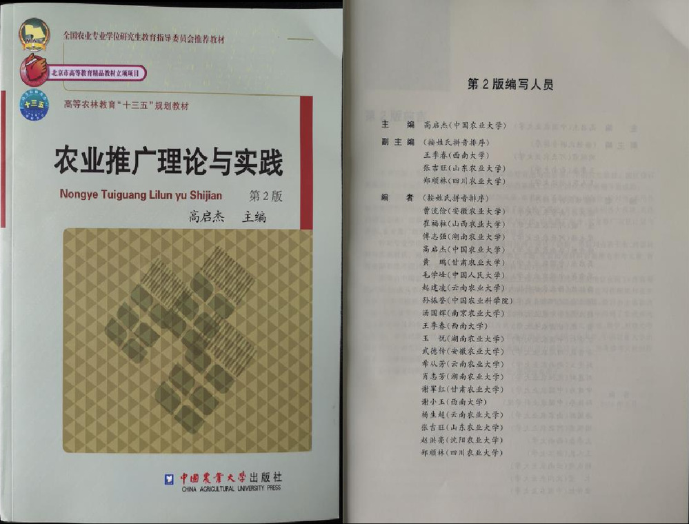 张吉旺,《农业推广理论与实践》,副主编,中国农业大学出版社,2018