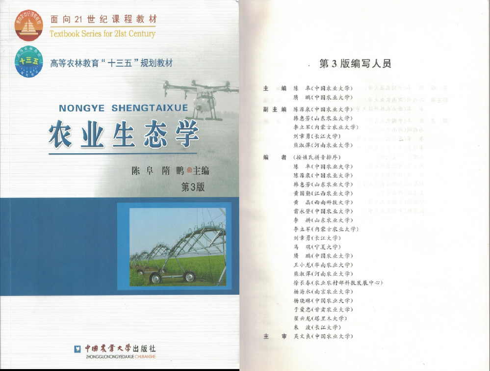 韩惠芳,《农业生态学》,副主编,中国农业大学出版社,2019