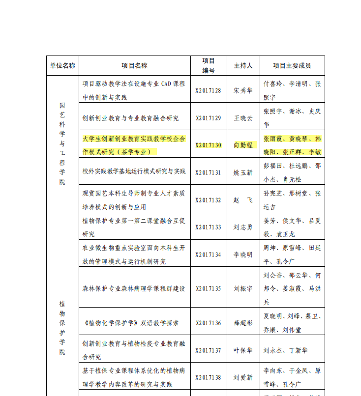 项目名称 大学生创新创业教育实践教学校企合作模式研究(茶学专业)