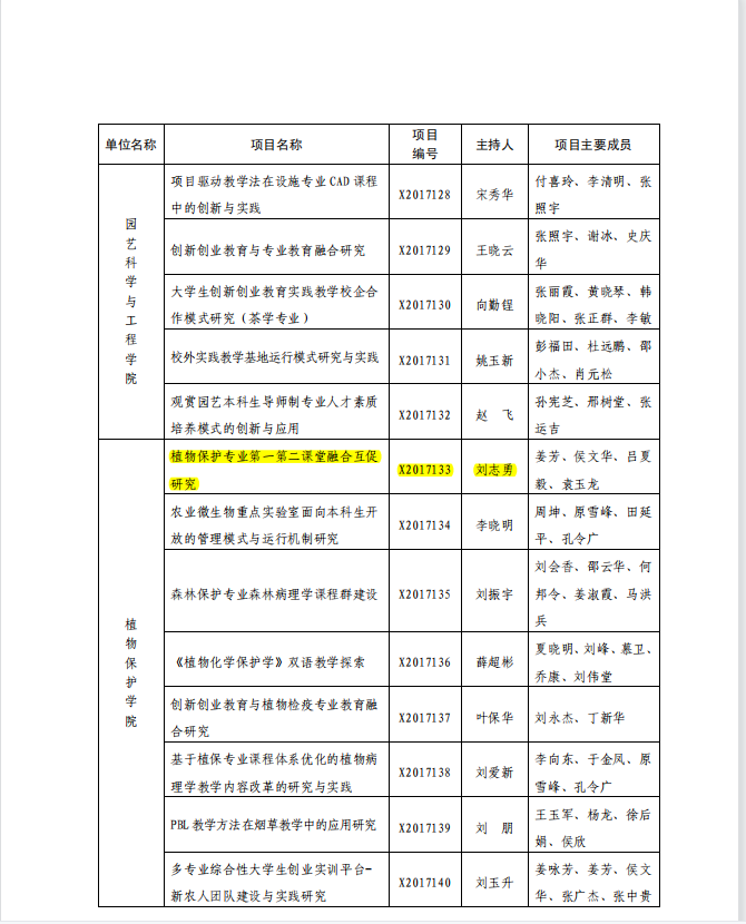 项目名称 植物保护专业第一第二课堂融合互促研究
