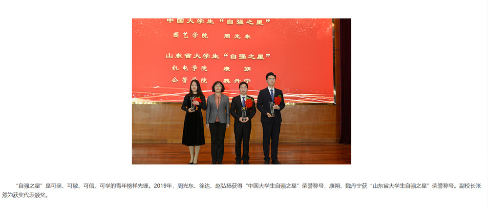 【山东农业大学】周光东获得“中国大学生自强之星”荣誉称号