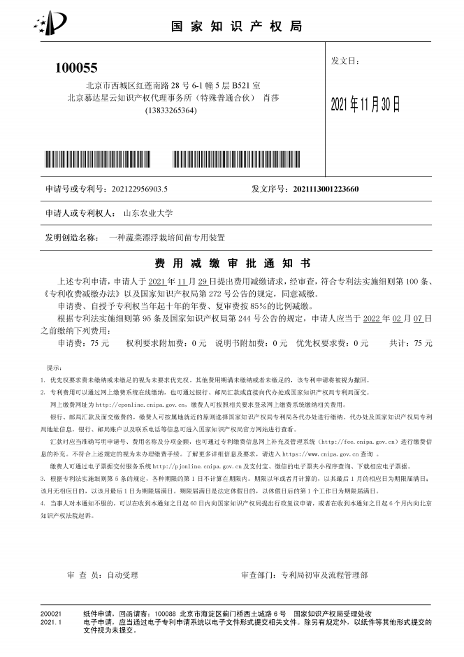 专利名称 一种蔬菜漂浮栽培育苗专用装置