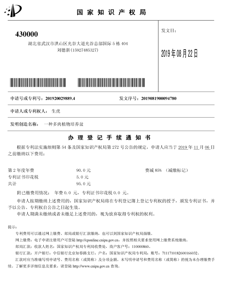 专利名称 一种多肉植物培养盆