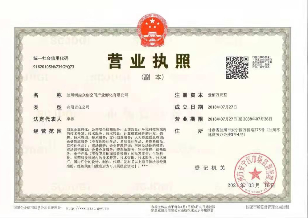 公司名称 兰州润垚众创空 间产业孵化有限 公司