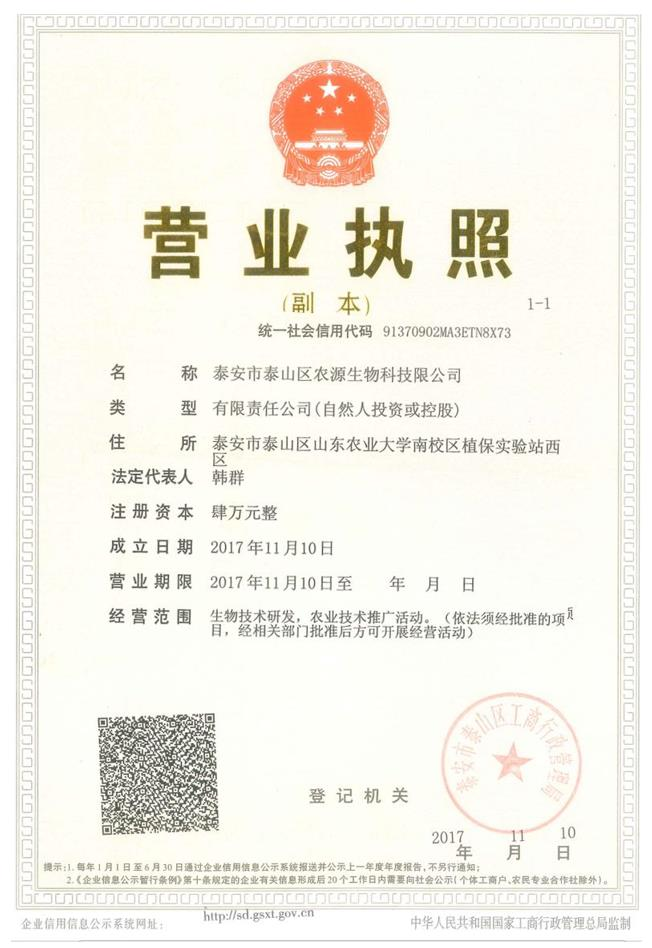 公司名称 泰安市泰山区农 源生物科技限公 司