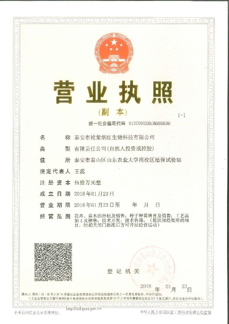 公司名称 泰安市姹紫烟红 生物科技有限公 司