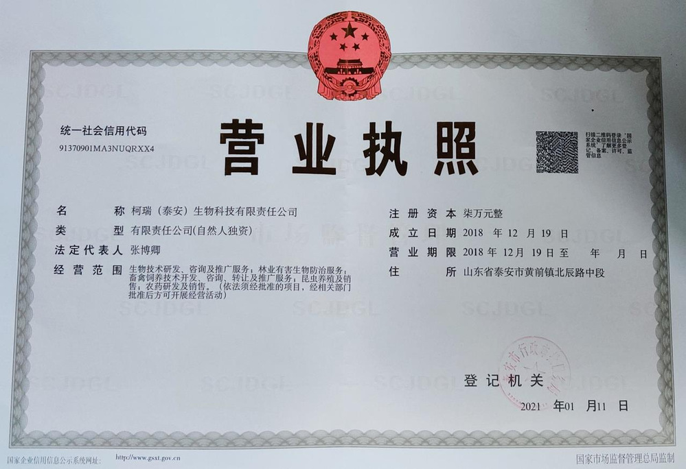 公司名称 柯瑞(泰安)生物 科技有限责任公 司