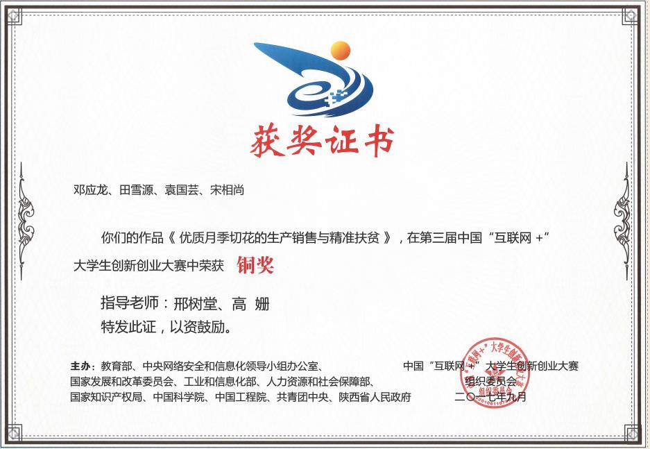 第三届中国“互联网+”大学生创新创业大赛,国家级铜奖