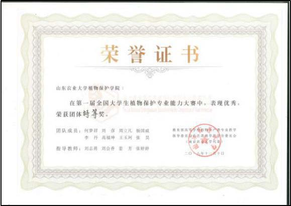第一届全国大学生植物保护专业能力大赛,国家级特等奖