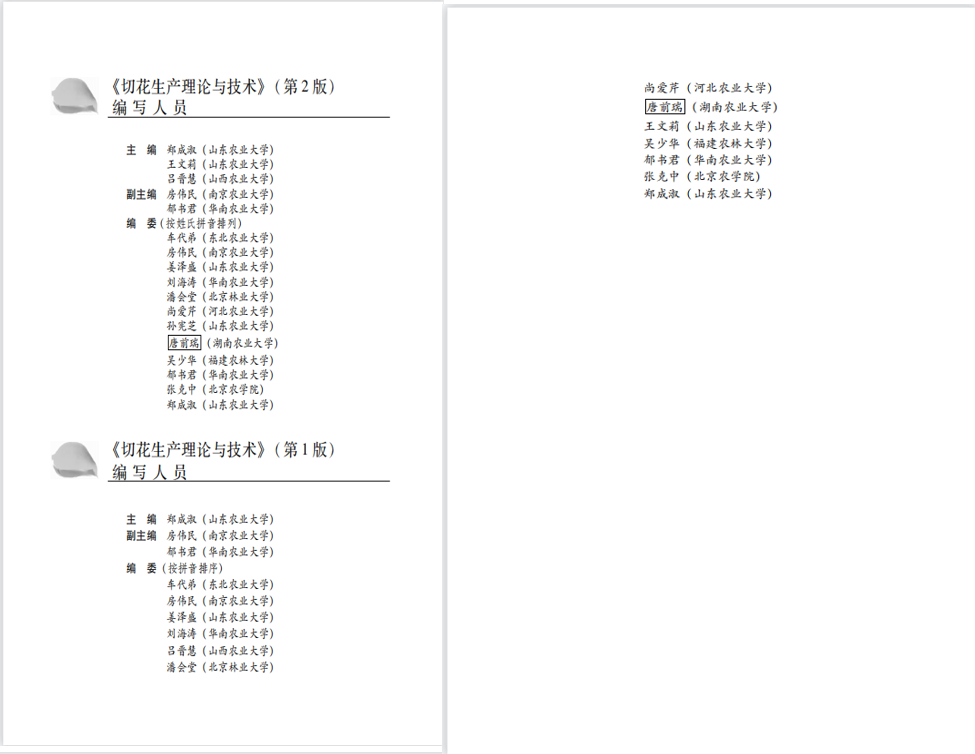 郑成淑,王文莉,吕晋慧,《切花生产理论与技术》,主编,中国林业出版社,2018.