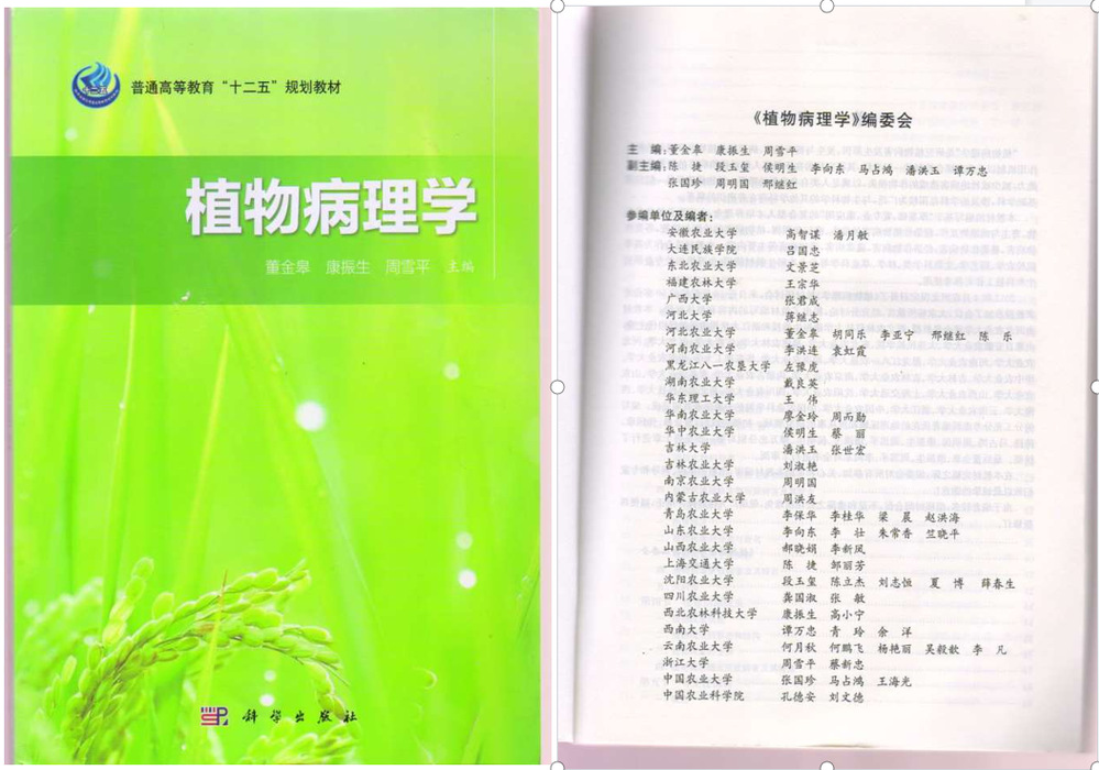 李向东,《植物病理学》,副主编,科学出版社,2016.